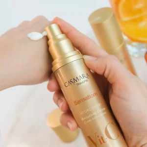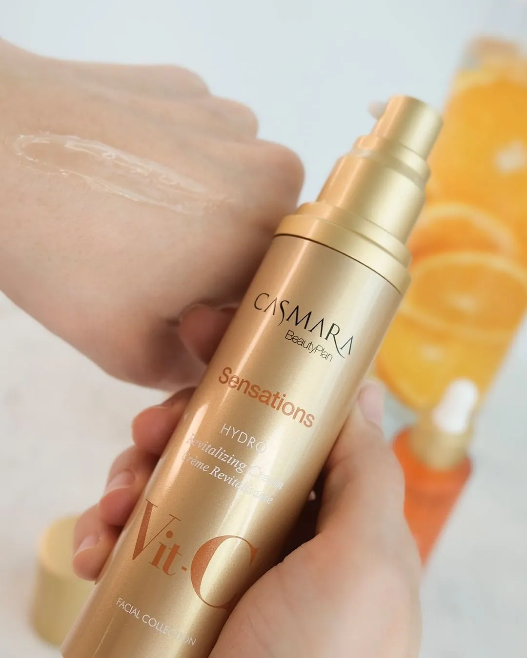 Casmara Vit-C Sensations Hydro Revitalizing Cream là kem dưỡng phục hồi đa năng giúp cung cấp năng lượng và cải thiện sức sống cho làn da. Với công thức kết hợp các vitamin thiết yếu cùng khoáng chất quan trọng, sản phẩm hỗ trợ bảo vệ da trước những tác động từ môi trường, đồng thời góp phần cải thiện các dấu hiệu lão hóa sớm. Kem dưỡng giúp da trở nên mềm mịn, ẩm mượt và tươi sáng hơn, đồng thời hỗ trợ củng cố hàng rào bảo vệ tự nhiên của da.
