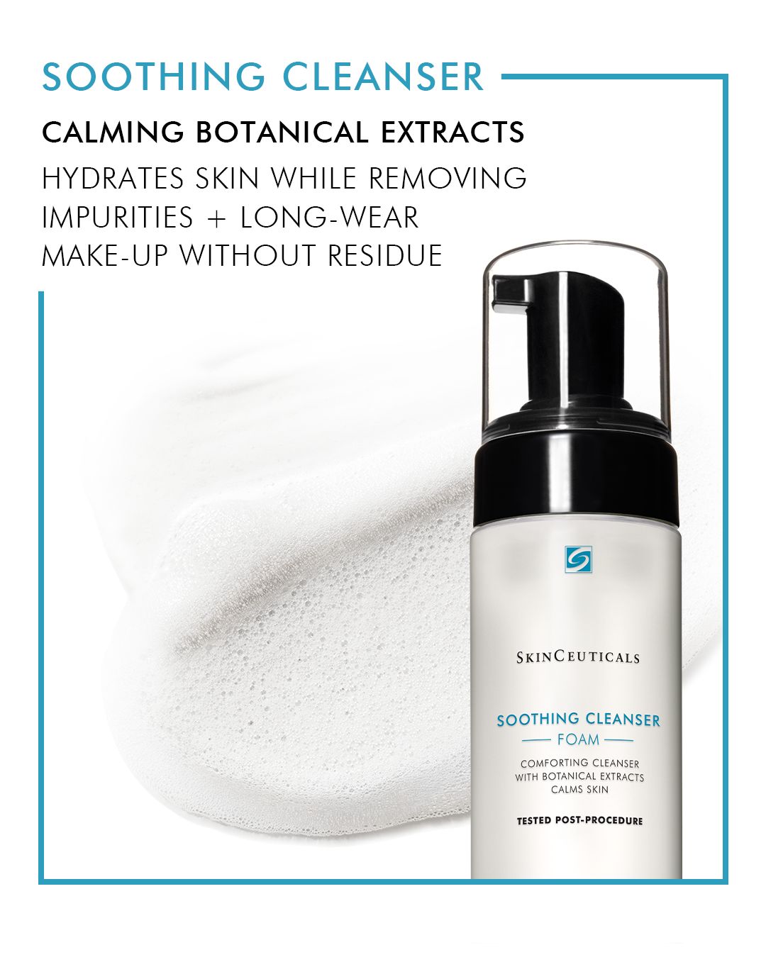 SkinCeuticals Soothing Cleanser Foam là sữa rửa mặt tạo bọt cao cấp giúp làm sạch sâu bụi bẩn, bã nhờn và lớp trang điểm mà vẫn duy trì độ ẩm tự nhiên của da. Công thức chứa chiết xuất thực vật giúp làm dịu, giảm kích ứng và hỗ trợ phục hồi da sau các liệu trình thẩm mỹ.