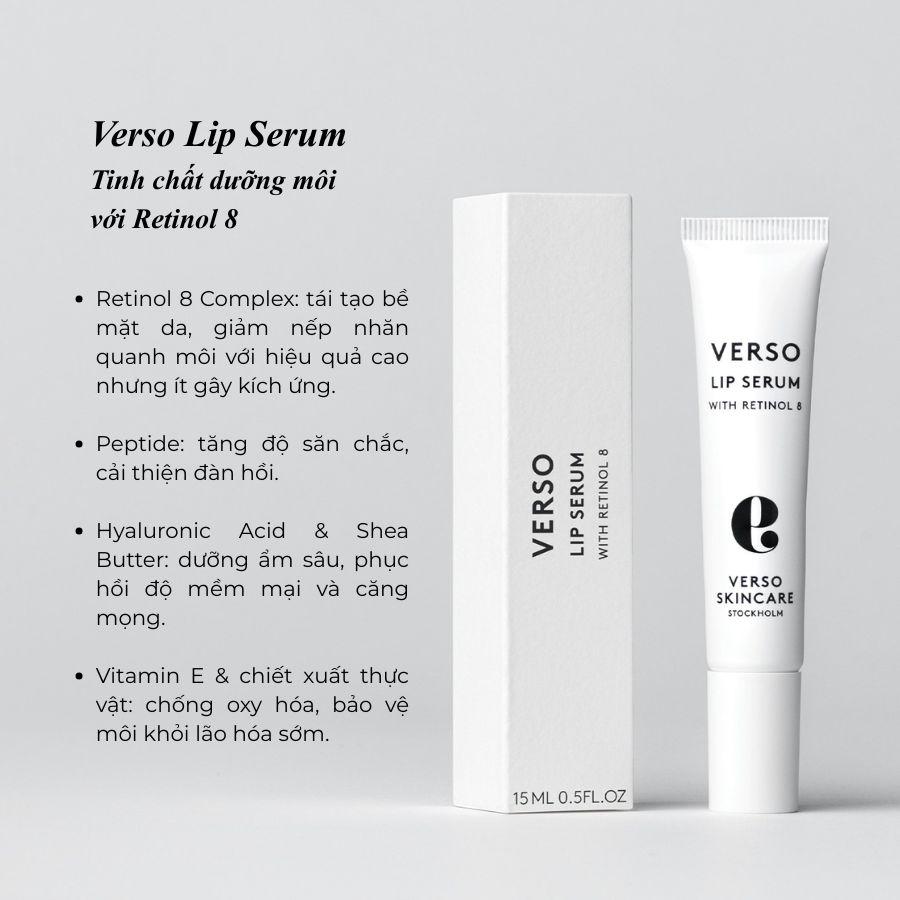 Retinol 8 (độc quyền Verso): trẻ hóa, làm mịn và tái tạo môi.